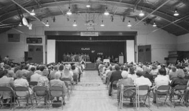 | They would see a gathering of students, parents, grandparents, brothers, sisters, aunts, uncles, other relatives and friends, in fact, a cross-section of the Rolfe community, including younger kids who would never march to "Pomp and Circumstance" in that gym. The following fall, things would change. |