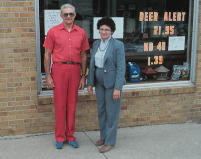 Roger and Alice Witt in front of Witt Hardware, circa 1988.