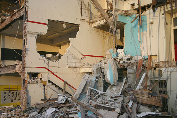 building on the day before demolition began as well as the first attack